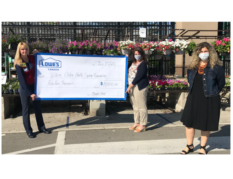 Boucherville, QC – June 8, 2020 – The 14 Lowe’s and RONA corporate stores in the Greater Toronto Area (GTA) are proud to unite in support of William Osler Health System Foundation (Osler Foundation) amid the current COVID-19 context. Osler Foundation received a total donation of $14,000 to help with the purchase of critical medical equipment needed to respond to the demands and challenges their three hospitals in the GTA are facing during this pandemic. Earlier this week, members of Osler Foundation and the Lowe’s Canada network held a socially distanced official cheque presentation to mark the occasion.